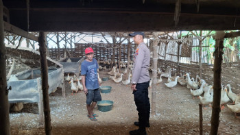 Dukung Ketahanan Pangan Nasional, Polisi Patroli Dialogis ke Peternak Bebek Wonoayu